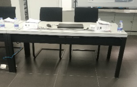 2、台面厚度≥32mm,表面耐冲击,基材采用优质环保级别中千板,甲醛释放量达到国际最高环保级别E0级标准,板材经防虫、防腐防潮等工艺处理,硬度高、不变形、比重合理,达国际握钉力测试标准,外贴环保三聚氰胺纸,表面不易被污染,具有耐溶剂性、耐水性、耐药品性、耐焰性等机械强度。封边:采用优质环保PVC封边条,厚度为1-2mm,采用优质环保热熔胶,经自动封边机高温热压成形,使板材粘连无丝无缝,能长期不变形、不开裂。台面前端开槽,配备上翻盖,槽内配备带有连线的多孔电源插排。优质钢材经静电喷涂,基材均经过酸洗磷洗等防锈处理,表面镀层没有剥落现象。脚架和桌面底部带线槽,美观实用。桌面带1组带有滑盖的多空插座。(配置:3个五孔电源,带一条2米电源线,网络和HDMI可为选配)