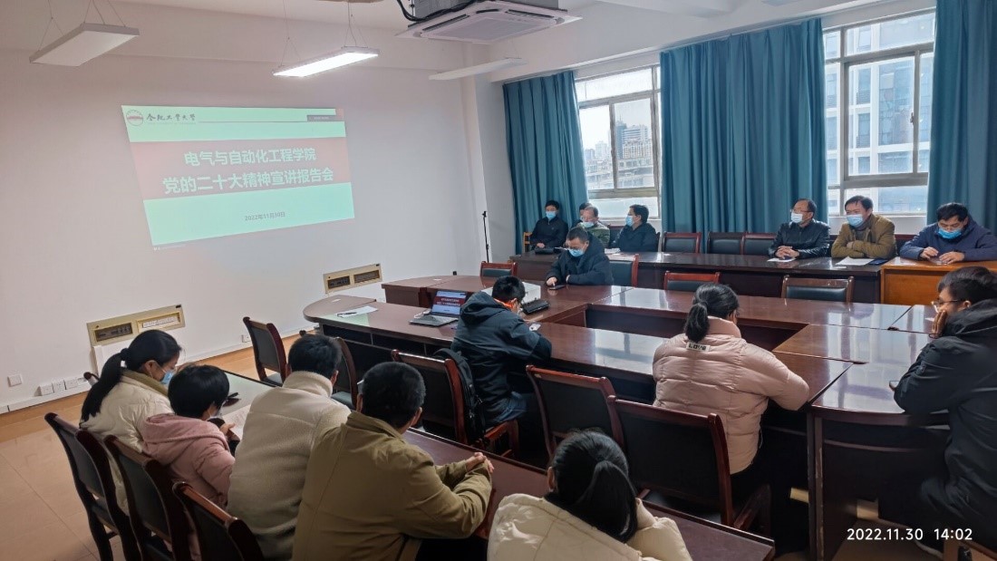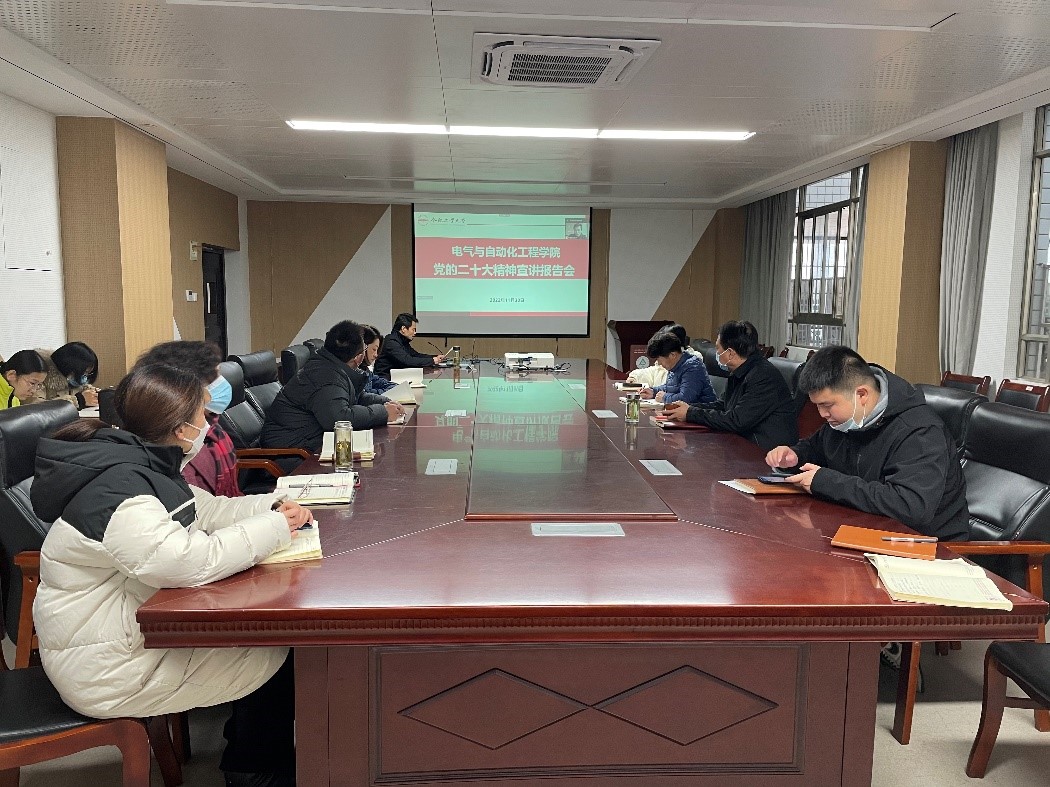 为推进学院学习宣传贯彻党的二十大精神持续走深走实,根据校党委统一部署,11月30日下午,电气与自动化工程学院在逸夫楼召开学习宣传贯彻党的二十大精神宣讲报告会,院党委书记何岳颀同志作宣讲报告,全院180余名教职工通过线上线下结合的方式参加学习。