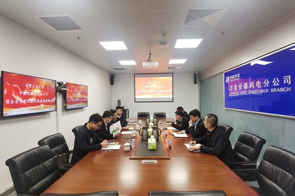 双方共同观看了合肥工业大学2022年招生宣传片和中国华能集团安徽风电分公司宣传片,李丽鹏与副总经理郭海全代表校企双方签署《合肥工业大学大学生就业实习基地协议书》,叶绍灿与邱先佳共同为“合肥工业大学就业实习基地”揭牌。根据协议,双方将在人才培养、学生实习就业等方面展开全方位合作。同时,双方将进行更深层次的产教融合探索,加快科技研究成果向产业技术转化和产品产出,提高社会服务能力。