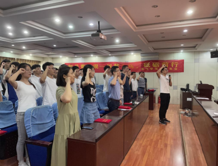 大会最后,在场全体共产党员在党旗下庄严宣誓,重温入党誓词。