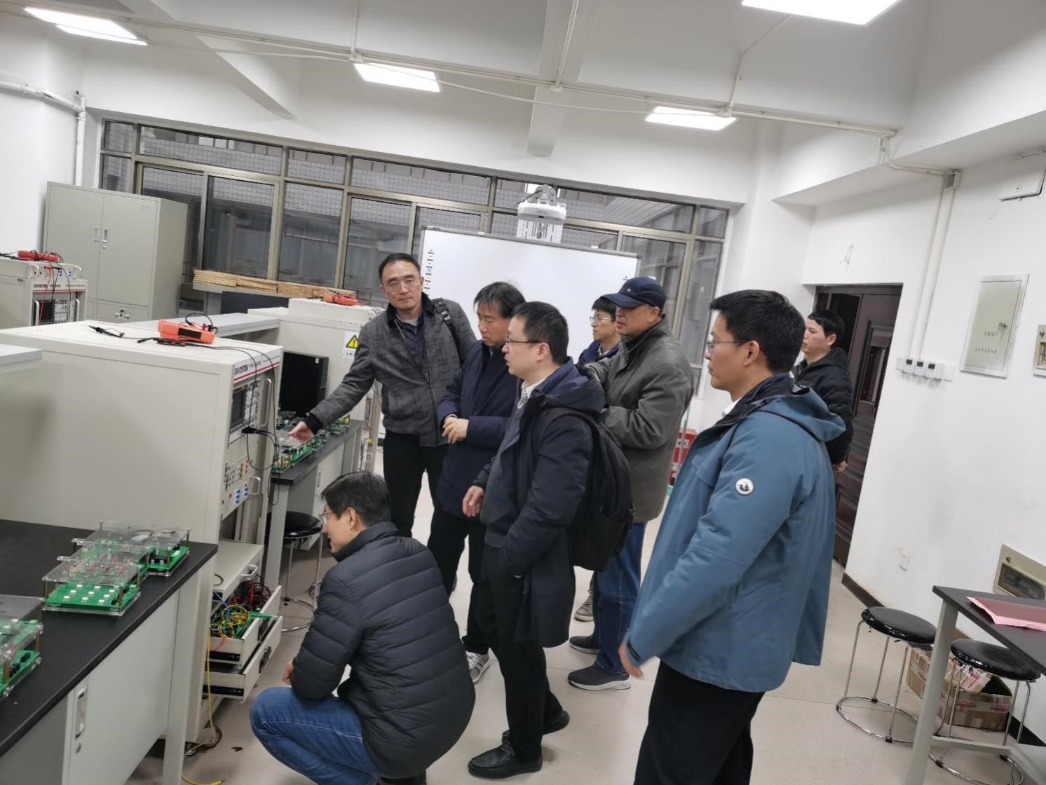 最后,与会专家参观了电力电子与新能源综合系统联合实验室、继远实训基地、机器人实验室、电机实训基地等,并与我院教师就新能源变流、机器人控制系统、电机下线等实验设备进行了深入交流。