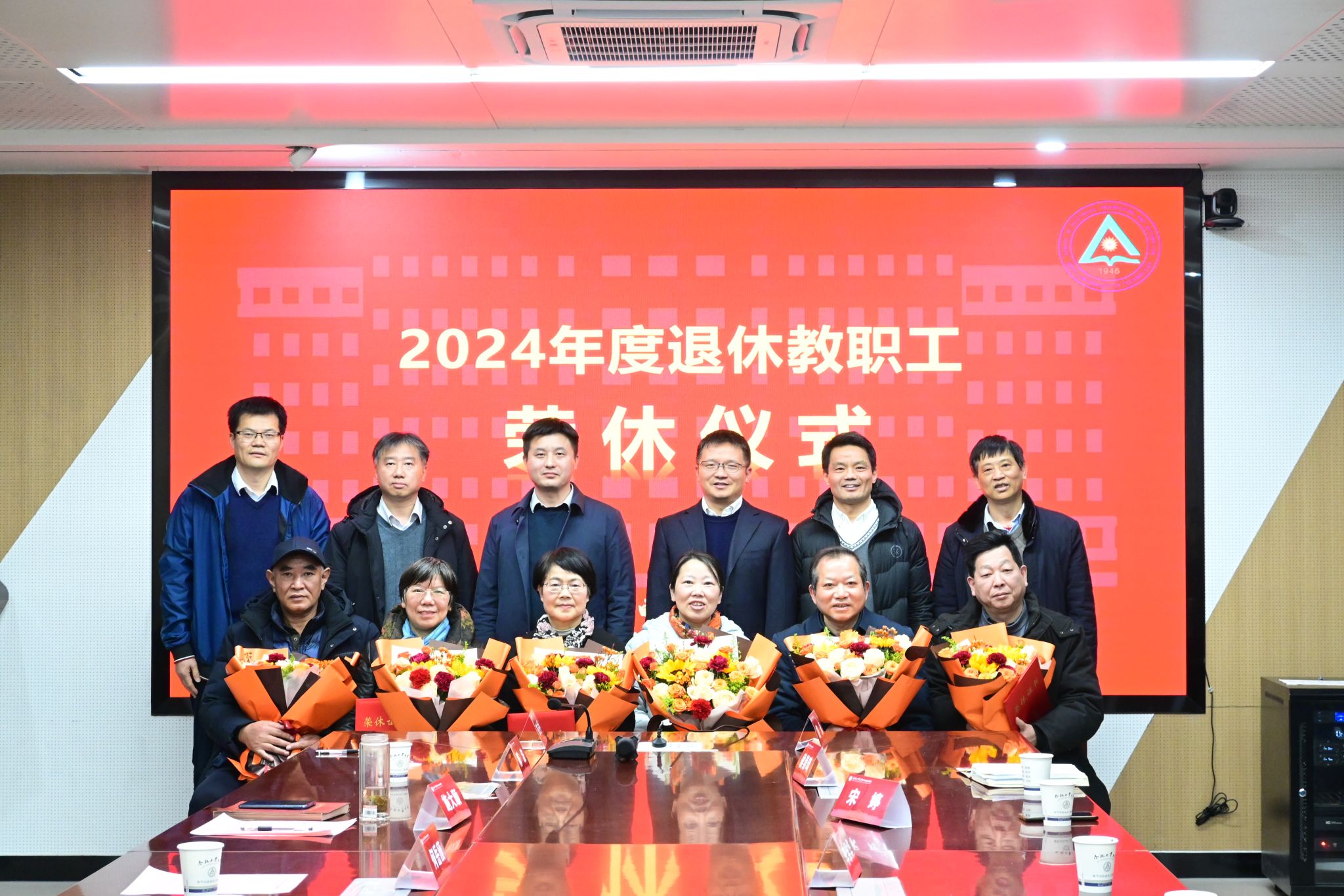 仪式上,学院领导班子为退休教师们赠送了鲜花、荣誉证书和纪念品,并与他们合影留念。
