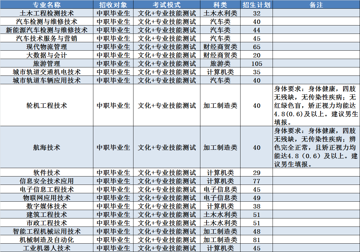 2023年四川交通职业技术学院单独招生计划2035名。其中:普高类1015名,中职类1020名。招生专业、计划、收费标准均以四川省教育考试院公布为准。