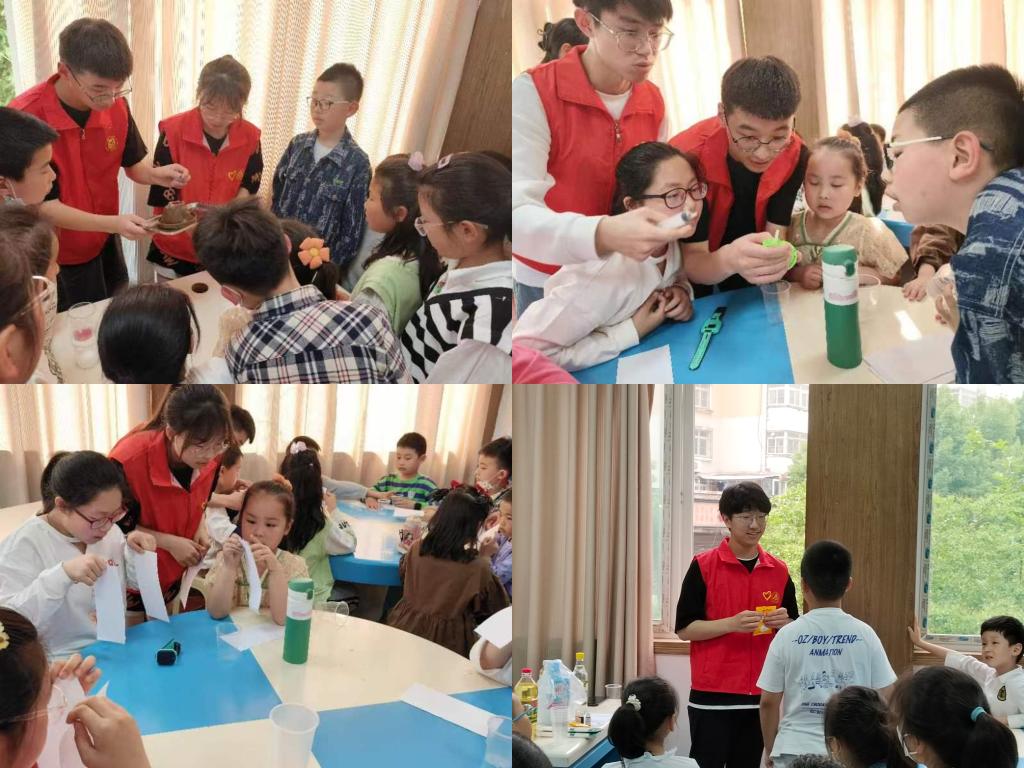 ‘熠’伴成长,多彩实验。培养科兴趣,助力社区学子全面发展,志愿者在宁国新村、琥珀、龚湾等多个社区开展科学实验,志愿者带领社区孩子们开展“淘气的小纸团”、“有趣的大气压——吸管抽水机”、“熔岩灯”、“大气压强——马德堡半球”、“人造雪”、“模拟火山爆发”、“神奇的静电——吵架的气球”等实验,在现场演示过程中,他们向小朋友们展示实验原理和流程。提醒小朋友们认真观察实验细节,引导积极思考实验现象的原理。演示结束后,志愿者分发实验器材,带领小朋友们亲自动手开展实验,为他们提供必要的帮助和指导,确保实验安全顺利进行。整个活动过程孩子们积极参与,踊跃的和志愿者探讨相关问题,展现了对科学实验的浓厚兴趣,活动在欢声笑语和满满收获中顺利结束。