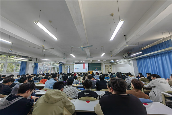 互动交流环节,同学们围绕职业规划、就业单位选择等问题踊跃提问,两位老师耐心地一一为同学们解答。