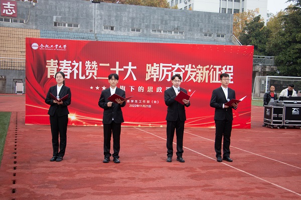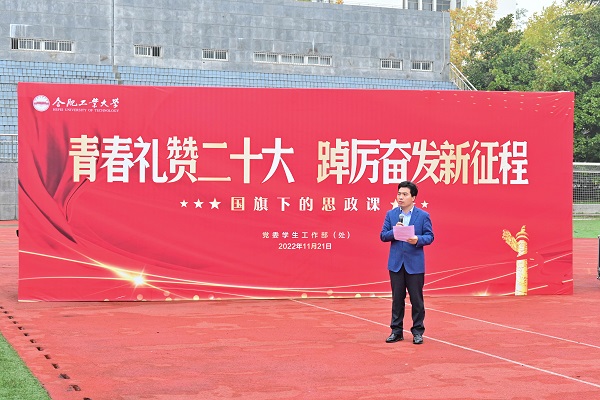 11月21日清晨, 电气与自动化工程学院“青春礼赞二十大,踔厉奋发新征程”主题升旗仪式暨国旗下的思政课在屯溪路校区西操场举行,学院党委相关负责人、学院全体辅导员以及全体本科生、研究生3000余人参加活动。