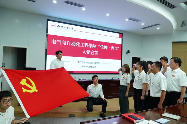 为庆祝中国共产党成立101周年,引导学生重温党的光辉历史,树牢“工业报国”之志,6月30日,电气与自动化工程学院本科生第三党支部“报国·青年”献礼“七一”主题党日活动在学术会议中心三楼报告厅举行,全体党员、发展对象及入党积极分子参加活动,活动共分为“报国·青年”“信仰·青年”“诚信·青年”三部曲。