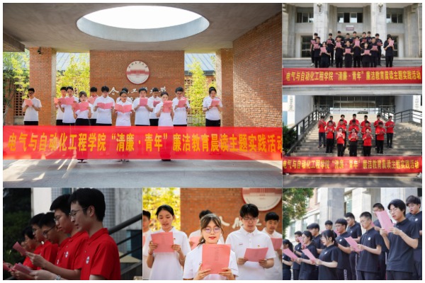 5月7日清晨,电气与自动化工程学院组织开展“清廉·青年”廉政教育晨读主题实践活动,学院纪委和团委相关老师、50余名党校班学员参加活动。