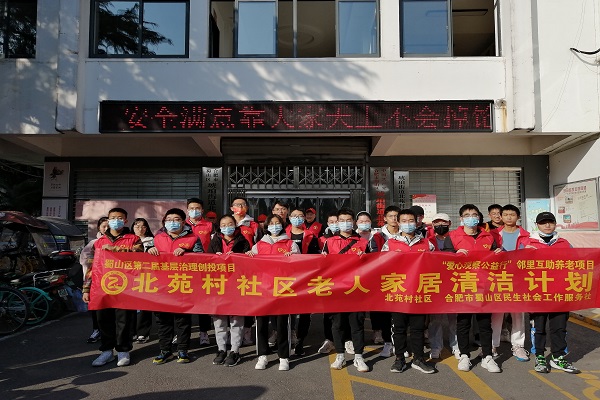 2021年11月25日,电气与自动化工程学院阳光社20名志愿者在北苑村社区开展“爱心观察公益行”邻里互助养老系列志愿服务活动之老人家居清洁计划,本着“关爱老人,奉献爱心”的初心,帮助社区内高龄老人进行房屋清洁。