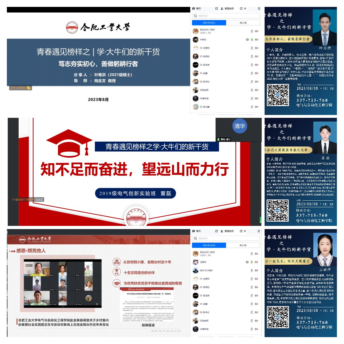 为帮助新生塑造规划能力,明晰拼搏要义,耕植发展意识,8月30日,电气与自动化工程学院学院开展“青春遇见榜样之学·大牛们的新干货”2023级本科生线上专题交流会。活动邀请到2023年“校长奖”获得者董磊、2023年研究生年度人物叶寿洪、2020级优秀学生代表王丽洋参与本次分享,学院相关负责老师主持会议,学院2023级全体同学参加本次会议。