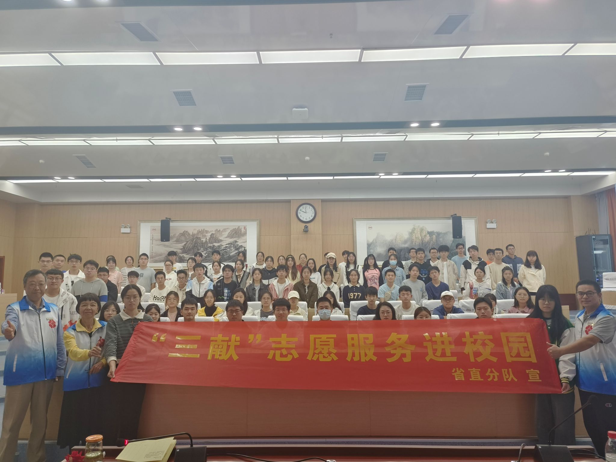 活动伊始,姜从山、文世乐和黄国荣依次分享了自己的献血和志愿服务经历。“不同的原因,一样的理想,拯救很多的人!”由于人类目前还无法实现人造血,需要输血进行救治的病人还有很多,血量需求仍然很大,献血的意义不言而喻。姜从山在分享中传递心有大爱、无私奉献、为人服务的志愿精神。志愿者们听到前辈们的志愿服经历,内心深处充满感动,激发了青年学子的奉献热情,积极投身“三献”志愿服务。随后,文世乐向志愿者科普科学献血的知识,包括血型、血液的构成、血液的生成、血液的新陈代谢、造血的原料等。同时,他用一个个鲜活的案例向同学们讲述身边的英雄故事,合肥市百次献血者王军麾、於云,中国新生代献血第一人金昕,一个个事迹感人至深,现场志愿者深切感受到献血者的奉献与伟大。为保障有献血意愿志愿者的身体健康,文世乐还向志愿者们讲述了献血的条件与献血各项注意事项,如献血前24小时不能喝酒熬夜,近一年内没有进行外科手术,献血需携带身份证等有效身份证件,献完血后需等待10分钟左右,无晕眩等反应才可离开,并提醒志愿者们献血后不要揉搓针眼、不要剧烈运动,为想要献血的志愿者们做好安全提示。提问环节,文世乐、姜从山、黄国荣对志愿者的相关问题进行详细解答,一问一答中,志愿者们对献血的条件、注意事项、合肥市献血政策有了更加深刻的认识,更加激发了积极参与志愿服务的热情和决心。