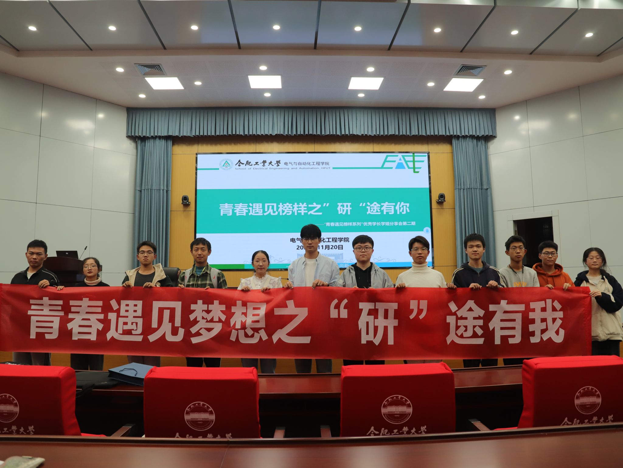 为激励学生树立学业目标,做好未来规划,助力成长成才,11月20日晚,电气与自动化工程学院在屯溪路校区学术会议中心一楼报告厅开展“青春遇见梦想”‘研’途有我交流分享会,邀请电气工程及其自动化专业、机器人工程专业、自动化专业3位2020级保研同学分享学习方法和保研策略,学院200余名学生参加活动。