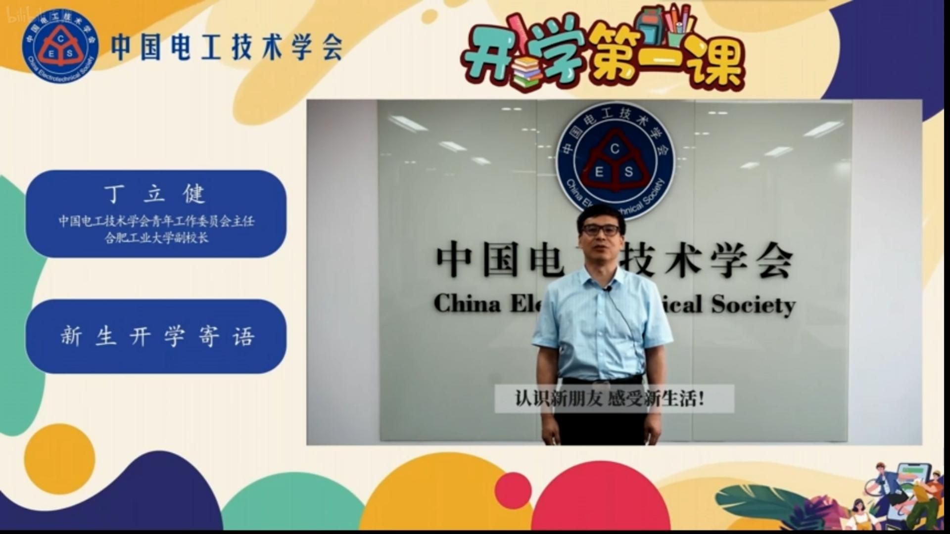 开幕式上,中国电工技术学会青年工作委员会主任、合肥工业大学副校长丁立健代表致辞,对观看本次“开学第一课”的学子表示热烈的欢迎,寄语广大学子发现电气之美、体验电气之荣光、畅享电气之未来,向广大新生提出努力学习新知识,树立新目标,认识新朋友,感受新生活的殷殷期待。