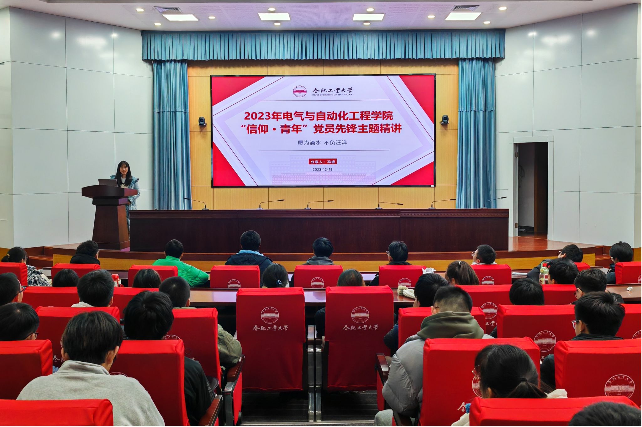 12月18日,电气与自动化工程学院于屯溪路校区学术会议中心一楼报告厅组织开展“青春遇见榜样”迭兴思享荟之“信仰·青年”党员先锋主题精讲活动,合肥工业大学2023年十佳大学生党员冯睿受邀主讲。