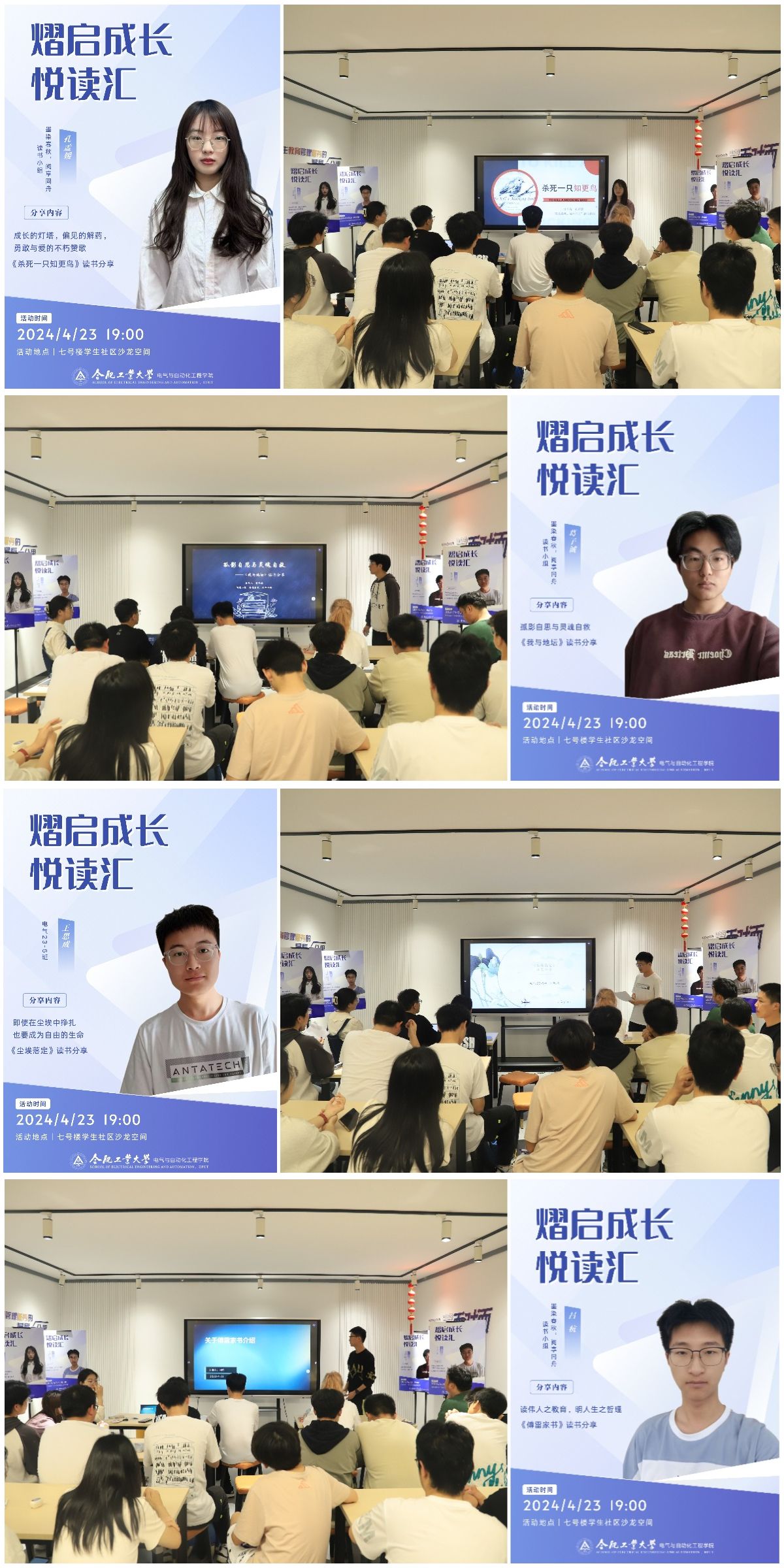 4月23日晚,电气与自动化工程学院于屯溪路校区七号楼学生社区沙龙空间开展“辉熠书雅韵,悦读启新章”主题实践活动。