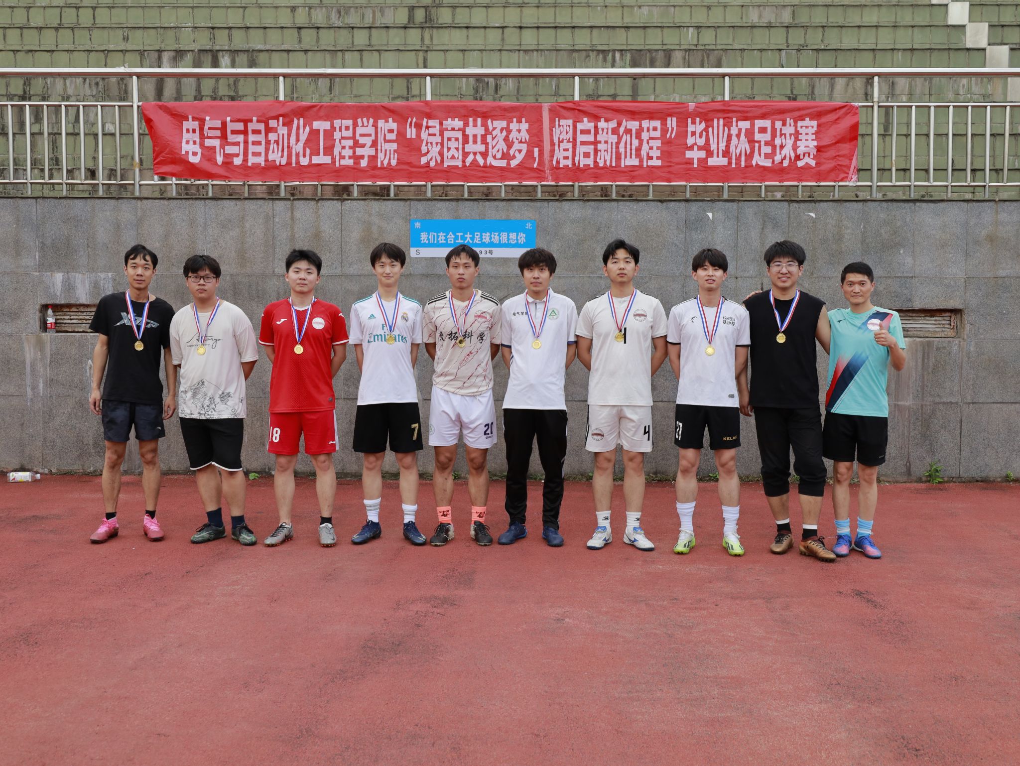 学院老师为毕业生送上纪念奖牌,勉励即将毕业的电气学子在今后的人生道路上踔厉奋发,勇毅前行,胸怀工业报国志向,做拼搏奋斗的追光者。毕业生球员纷纷表示,将牢记母校和老师的培养和教导,继承合工大学子工业报国、踏实肯干的精神品质,在工作岗位上奋力拼搏,跑出电气学子的青春加速度。