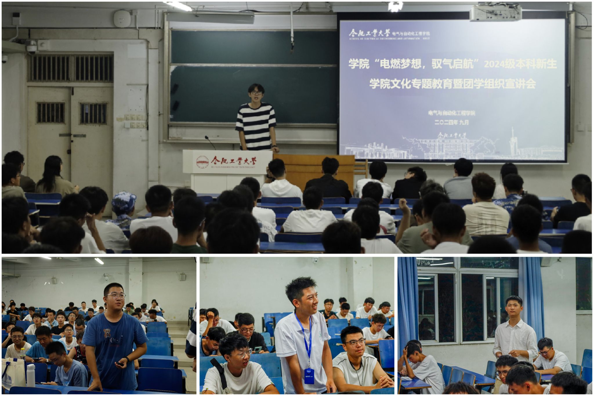 为充分发挥学院文化的精神培育效能,激发学生团学组织的新育活力,9月12日晚,电气与自动化工程学院“电燃梦想,驭气启航”2024级本科新生学院文化专题教育暨团学组织宣讲会在西二教学楼202、302教室分批次开展,学院相关负责老师、学生团学组织相关负责人、全体新生参与本次活动。