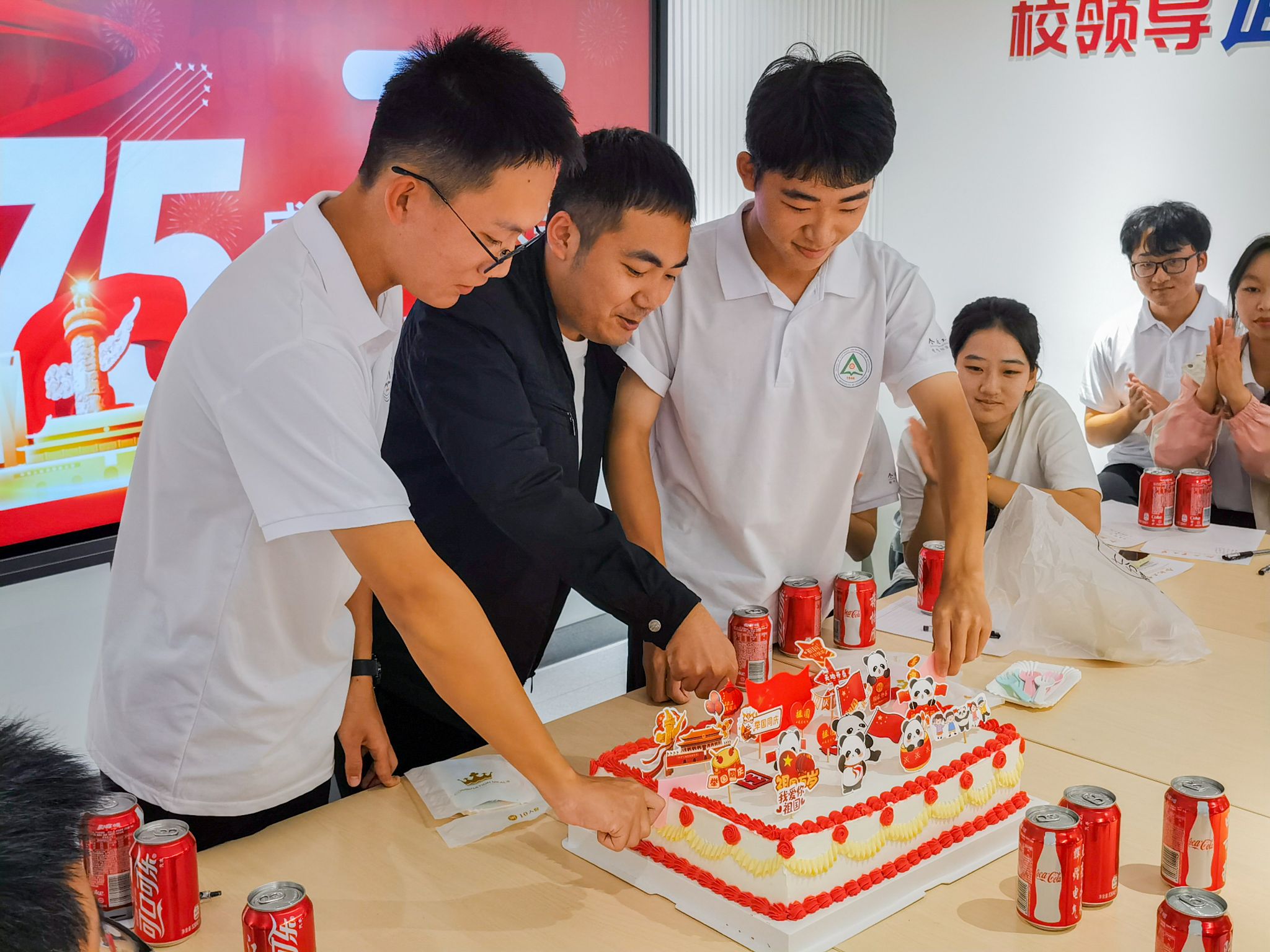 学院为与祖国同一天生日的学生准备了暖心的庆祝生日环节,学院相关负责老师与学生们一起切蛋糕,并送上暖心的生日礼物和生日祝福。全场师生共唱生日歌,许下祖国繁荣昌盛、学校蓬勃发展、学生成长成才的美好心愿,师生们度过了一个温馨难忘的集体生日。