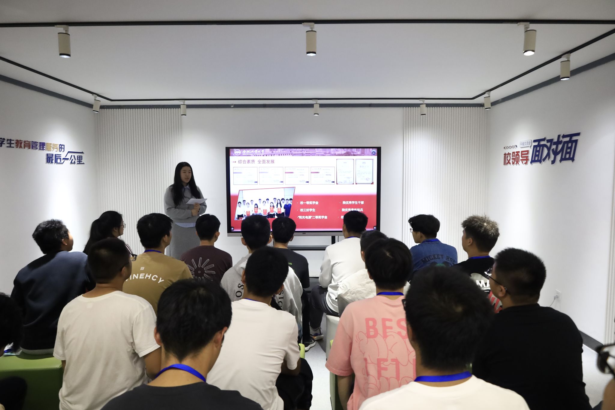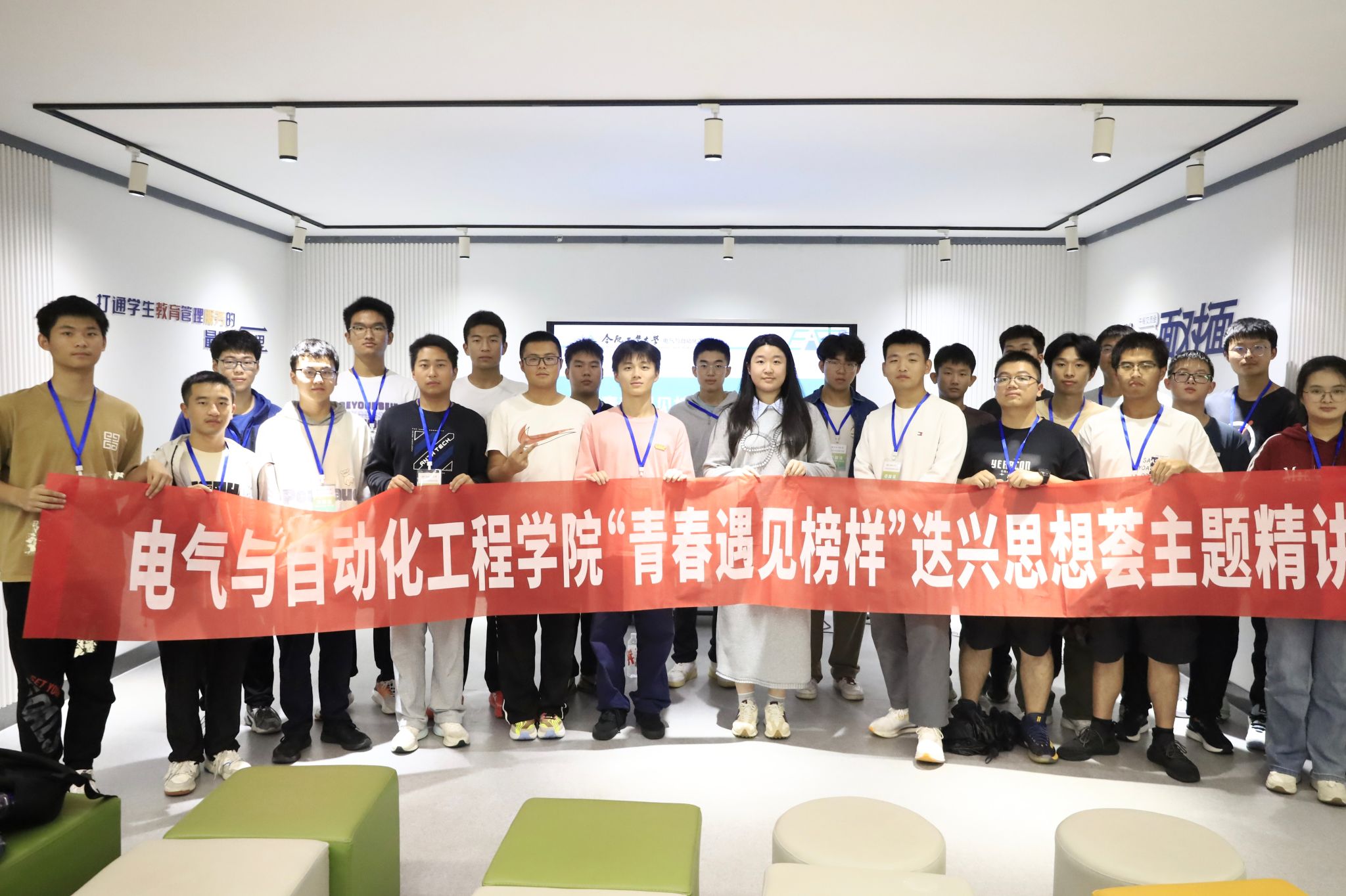 10月16日晚,电气与自动化工程学院于七号楼沙龙空间开展“青春遇见榜样”迭兴思享荟之“熠言·青程”党员先锋主题精讲活动,2024年校十佳大学生党员王宇清主讲。