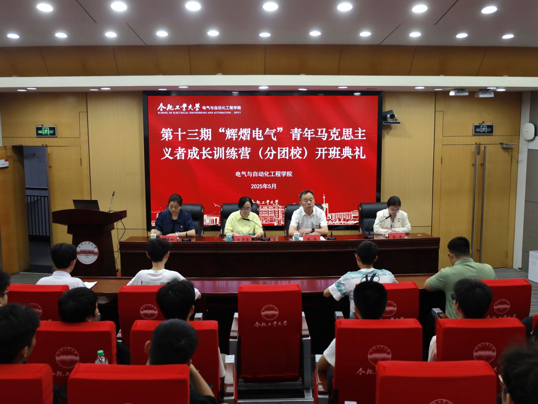 5月27日晚,电气与自动化工程学院第十三期“辉熠电气”青年马克思主义者成长训练营(分团校)开班仪式在屯溪路校区学术会议中心二楼小报告厅举行,校团委、学院相关负责人,分团校学员参加活动。