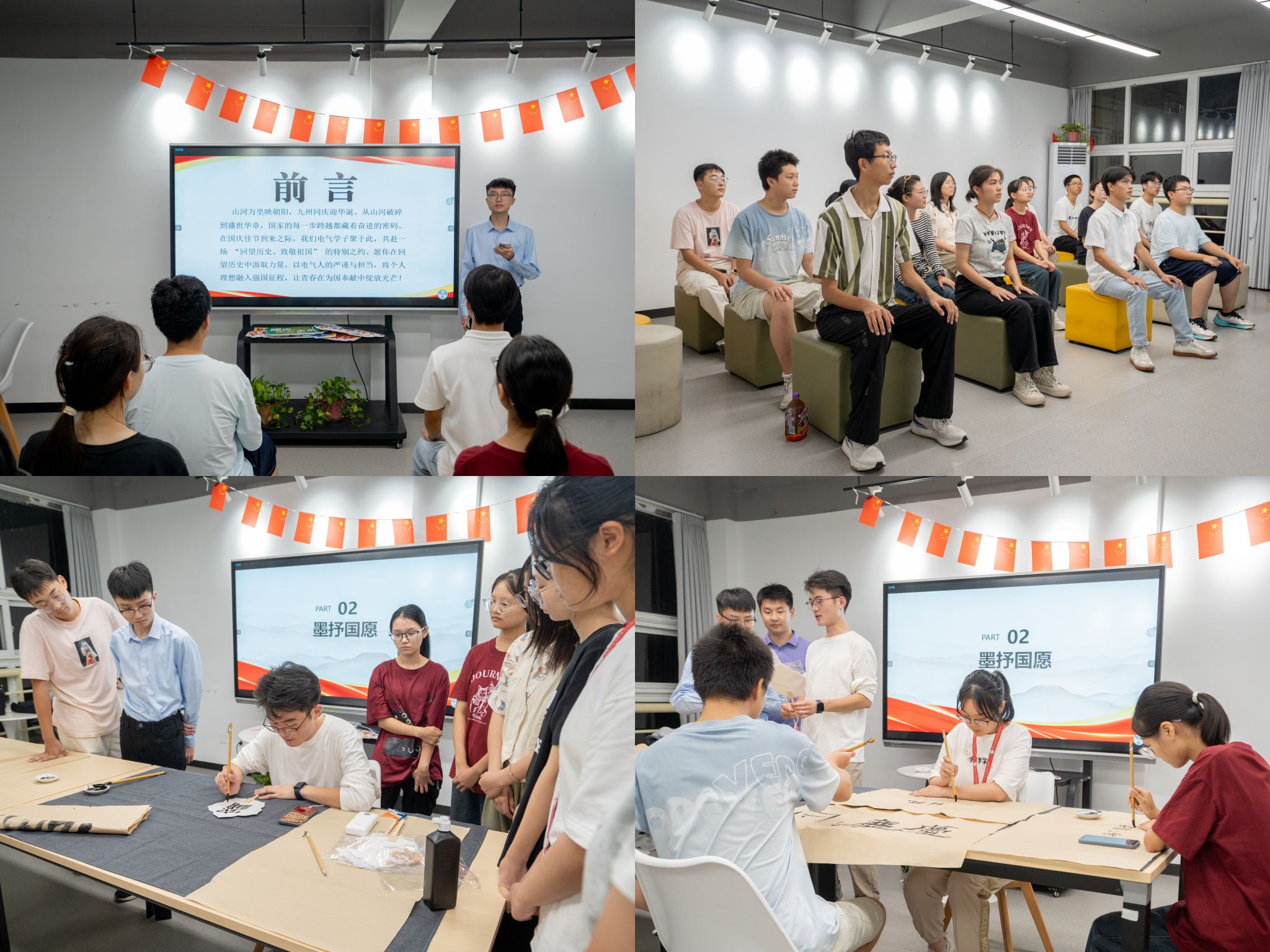为庆祝中华人民共和国成立76周年,弘扬中华优秀传统文化,2025年10月5日,电气与自动化工程学院在翡翠湖校区5号楼学生社区成功举办“‘熠’展风华,书颂祖国”国庆主题文化活动。