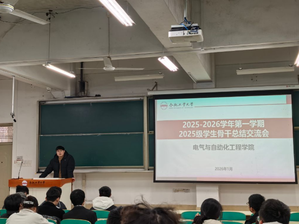 为总结学年工作,加强学生骨干队伍建设,1月14日,电气与自动化工程学院召开2025级学生骨干学期末总结交流会。会议由2025级辅导员戴梦雅、马晓春主持,2025级班委成员、辅导员助理及自律委员会成员参加会议。