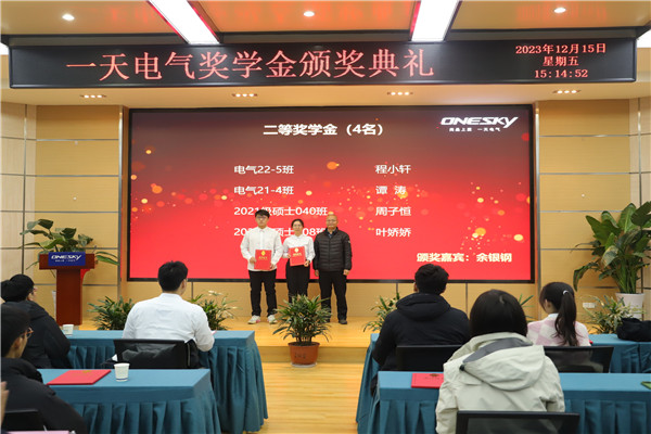 一天电气董事长芮骏对获得“一天电气奖学金”的同学表示祝贺,对支持和关心一天电气工作的工大老师们表示感谢。他介绍了目前企业的主要经营方向、企业的核心技术优势和未来技术的发展方向。并表示近三年在学生培养方面,与工大在项目合作、实验室联合申报、非全研究生培养、人才引进方面建立了长期的合作。他希望可以通过“一天电气奖学金”的设置鼓励先进、奖励促学,增强学生努力学习的信心,并表示希望更多的同学了解一天,关注一天,欢迎未来有更多的同学加入一天。