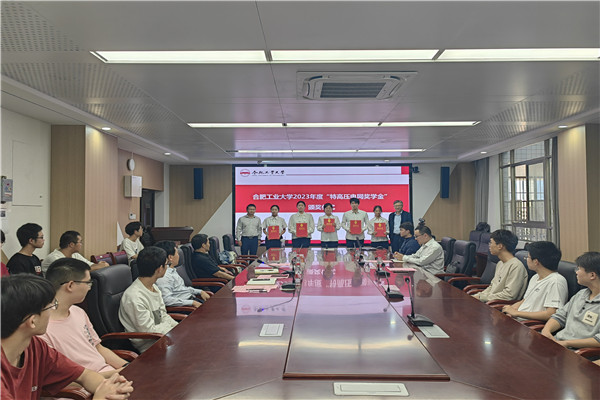 11月1日,合肥工业大学第九届“特高压电网学金”颁奖仪式在屯溪路校区逸夫楼1009会议室举行。国家电网安徽省电力有限公司党委宣传部主任陈浴新、品牌处处长何宁,电气与自动化工程学院院长向念文、党委书记何岳颀、党委副书记兼纪委书记李丽鹏参加仪式。