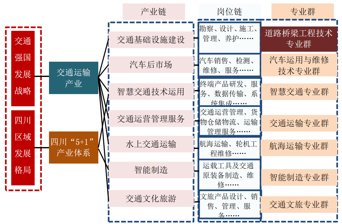 围绕《交通强国建设纲要》及四川省“一干多支、五区协同”“四向拓展、全域开放”战略布局,学校以车路协同为主线,在科学组建“1+2+4”专业群建设格局的基础上,通过重构课程共建资源夯实基础、打造结构化教学团队筑牢支撑、开展专业升级改造提升品质、完善动态调整机制彰显特色,形成了辐射西部地区的专业群建设示范经验。