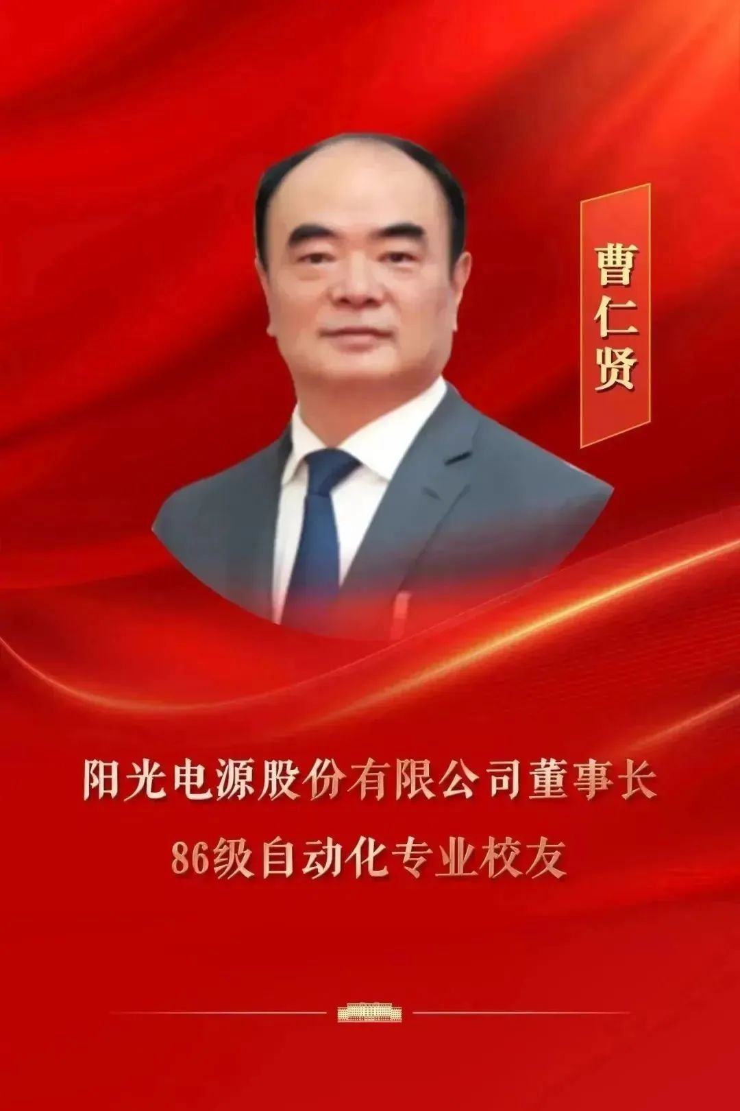 曹仁贤,男,汉族,1968年7月出生,1990年合肥工业大学工业自动化专业本科毕业,1993年合肥工业大学工业自动化专业硕士毕业,我国太阳能、风能发电行业的知名专家,享受国务院特殊专家津贴,第十四届全国人大代表。现任阳光电源股份有限公司董事长兼总裁,中国光伏行业协会理事长。