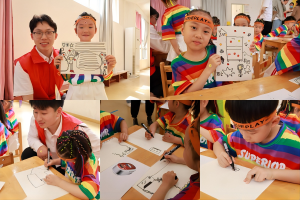 共建仪式后,支部党员顾涵江以讲故事的方式向小朋友科普有关用电安全小知识;以“你画我猜”互动游戏,利用日常生活中运用以增强记忆;以观看“安全用电科普”微短片,引导小朋友观察发现短片中列举的危险用电行为和正确做法,增强学生的自我保护意识。最后,志愿者带领小朋友们合作完成用电安全手抄报,在动手实践中增强防范意识,提高自身预防能力,现场气氛十分活跃。