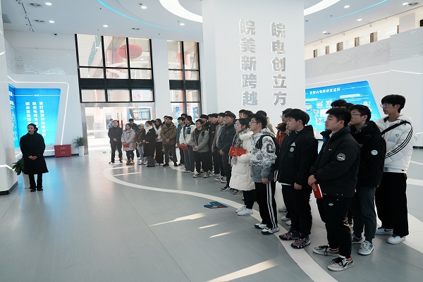 院学生工作办公室主任兼团委书记、本科生第三党支部书记刘开阳向国家电网安徽省电力科学研究院对本次联学共建的大力支持表示感谢。她认为,这是一堂精彩的“理实衔接思政课”,展厅内各种科技创新成果琳琅满目,互动式、观摩式、体验式的实践教学,让我们切实感受到中国电力科技、电网发展水平、电力相关产业和装备的飞跃式发展,体悟到核心技术源头性创新和电力技术发展模式的创变,让中国在世界范围内实现了“从跟随到超越”。她希望广大电气学子能够以致力于电力行业发展为己任,强化专业认同,丰富知识储备,厚植专业素养,淬炼过硬本领,满怀“青春”热爱,“筑梦”报国“山海”,以昂首阔步之姿接过奋斗的“接力棒”。
