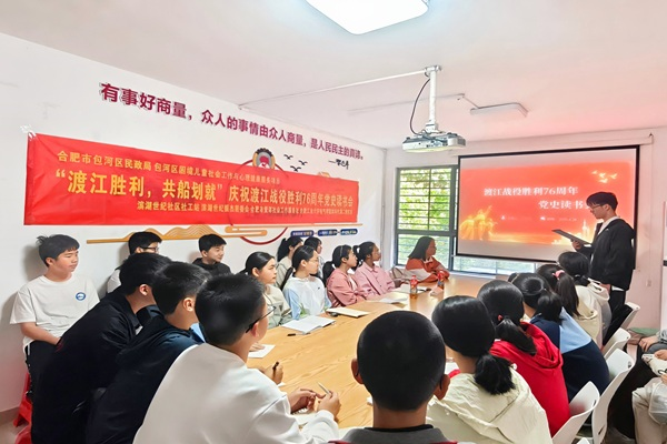 为发挥学生党员先锋模范作用,传承红色基因,厚植青少年爱国情怀,5月11日下午,电气与自动化工程学院本科生第二党支部联合电气工程及其自动化专业2024级3班团支部,赴包河区滨湖世纪社区开展庆祝渡江战役胜利76周年主题党史读书会。