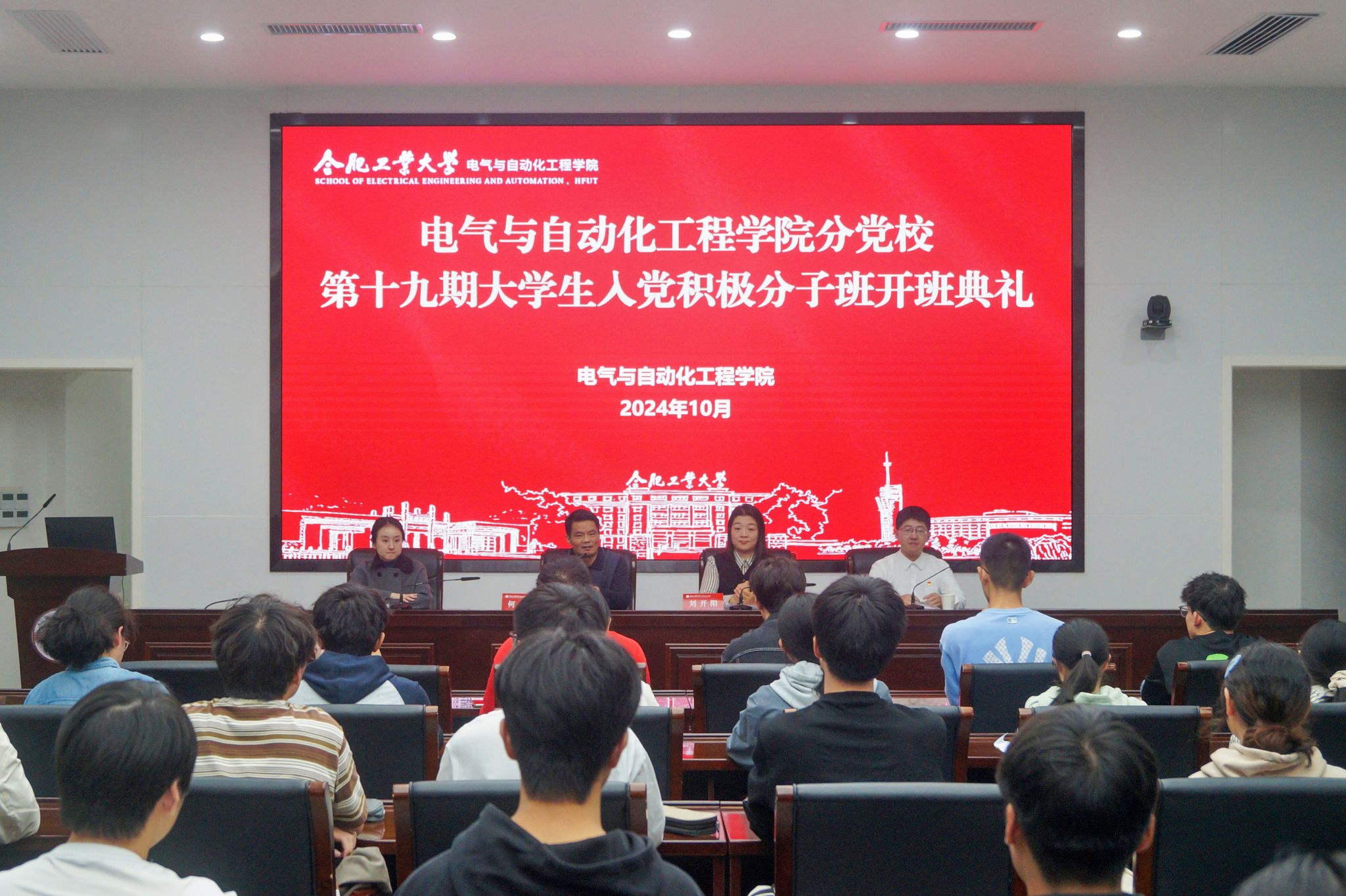 开班典礼在庄严的国歌声中开始。学院学生工作办公室主任兼团委书记刘开阳宣读了《关于同意陈振涛等109名同学参加电气与自动化工程学院分党校第十九期大学生入党积极分子班学习的决定》,学院学生工作办公室副主任兼团委副书记左能宣读了本期分党校积极分子班的教育实施方案。分党校积极分子班班主任黄子文宣读了《中共合肥工业大学委员会党校大学生入党积极分子班学习纪律》。自动化专业2023级本科生陈怡璇作为学员代表发言,表示将切实发挥好模范带头作用,以实际奋斗向党组织展现青春最亮丽的底色。